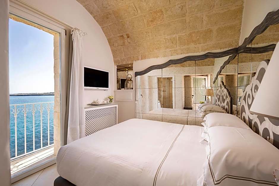 This suite has a balcony, hot tub and bathrobe. This room is located 492 feet from the main building. On two floors, please note that there is a flight of stairs to get to the bedroom: living room with sofa- bed with 2 single beds, bathroom, curved TV, table and chairs, fire place, windows facing the old town; on the second floor double bedroom with king size bed, flat screen TV, mini-bar, and safe, jacuzzi, bathroom with Hammam, window with old town view, Air conditioning/heating, Tea and Nespresso coffee making facilities. Private rooftop terrace (44 sqm) equipped with sun beds and garden sofas to make the most of the Apulian climate and with old town rooftops view)